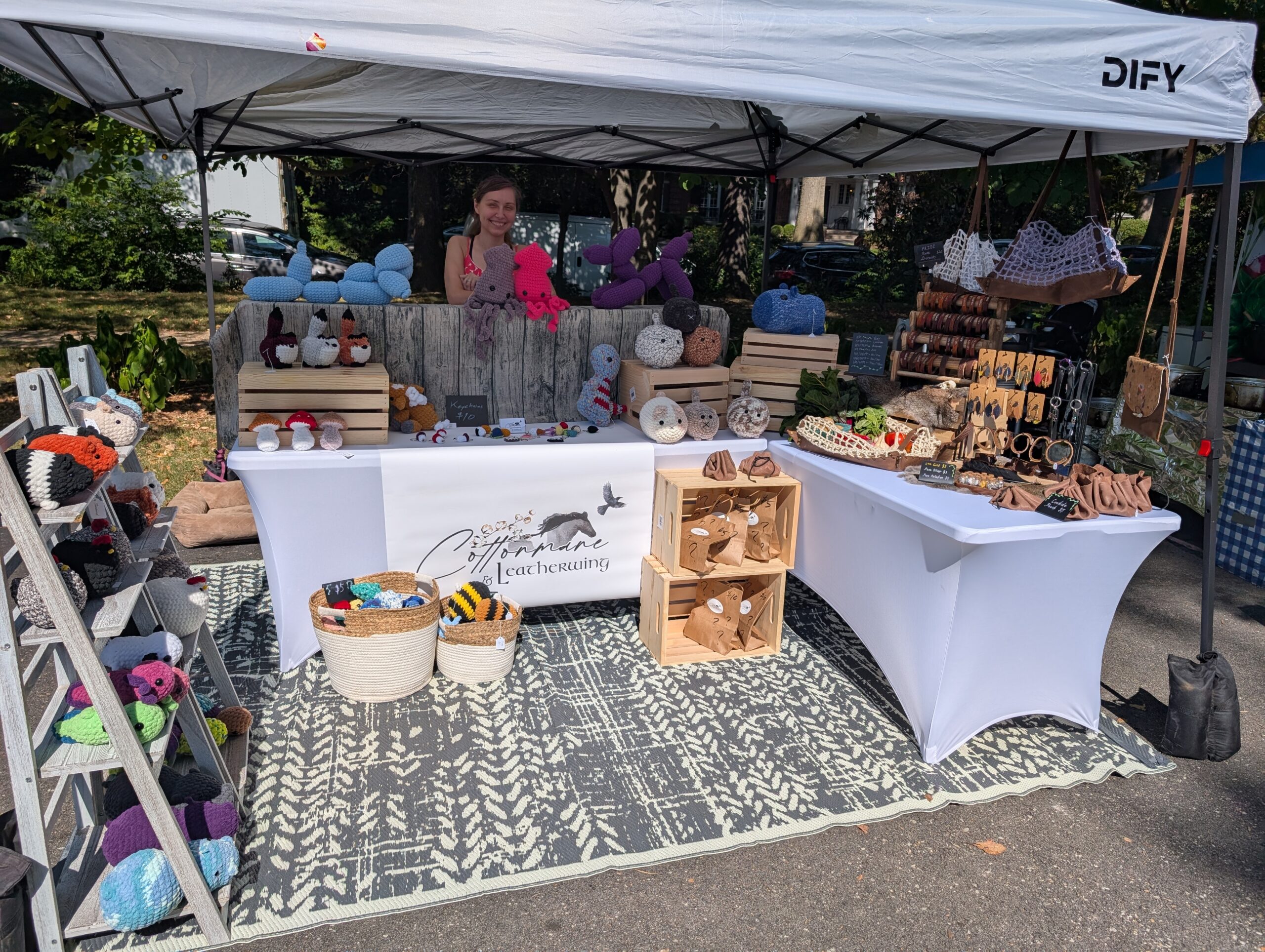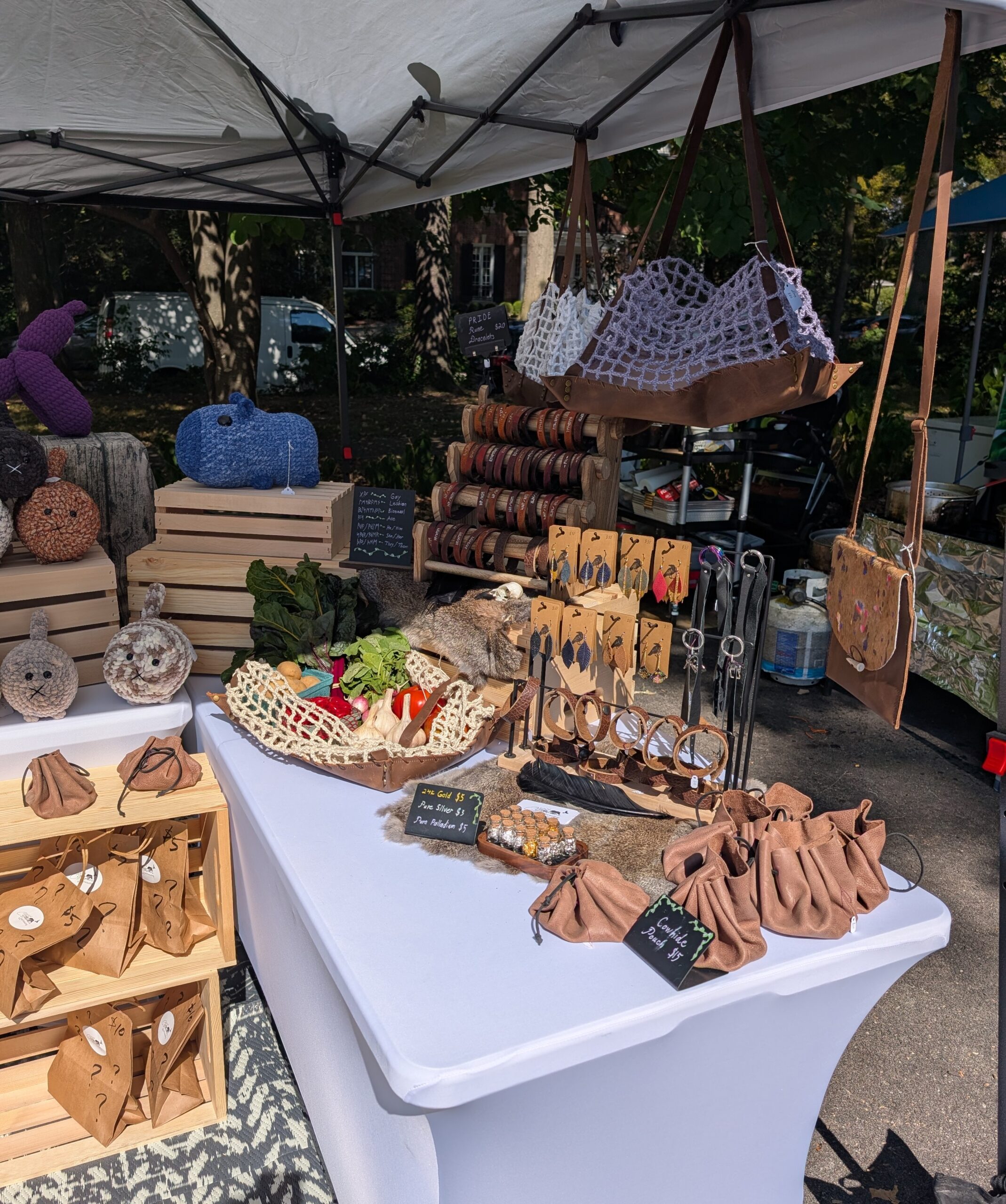 From Amigurumi to Leather Jewelry and more, we maintain a large stock of handmade items. Cats, Capybaras, & Axolotls; Keychains, Pouches, and Earrings: we’re always dreaming up something new to share!